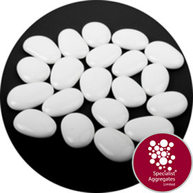 | Specialist Aggregates » White / Crystal » Individual Packs » Flat Pebbles - Paper White Glass - Small | Log In | View Basket |